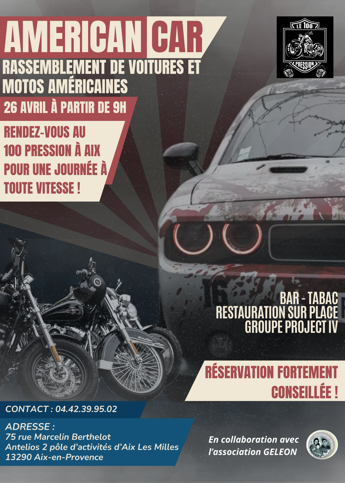 Création de flyers, d'affiches et d'éléments graphiques pour l'évènement "American Car". C'est un rassemblement de voitures et motos américaines se déroulant dans le sud de la France.